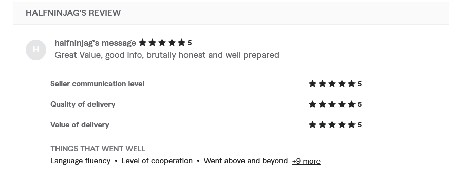 All coaching programs have received 5-star feedback on both Fiverr and my Discord.